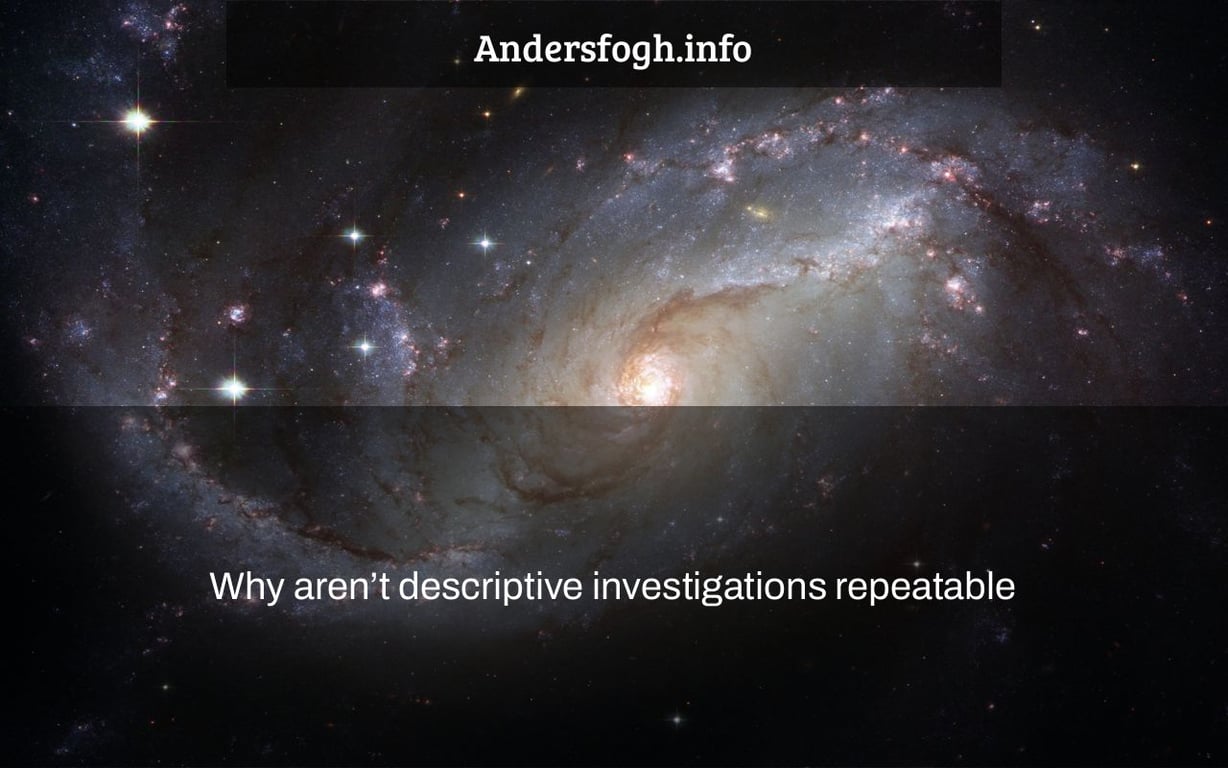 Answer: Because descriptive studies are based only on observations made at a specific moment in time, they are not repeatable. At a later period, the findings may differ. Furthermore, descriptive studies lack factors that may suggest cause-and-effect correlations. 19th of August, 2019